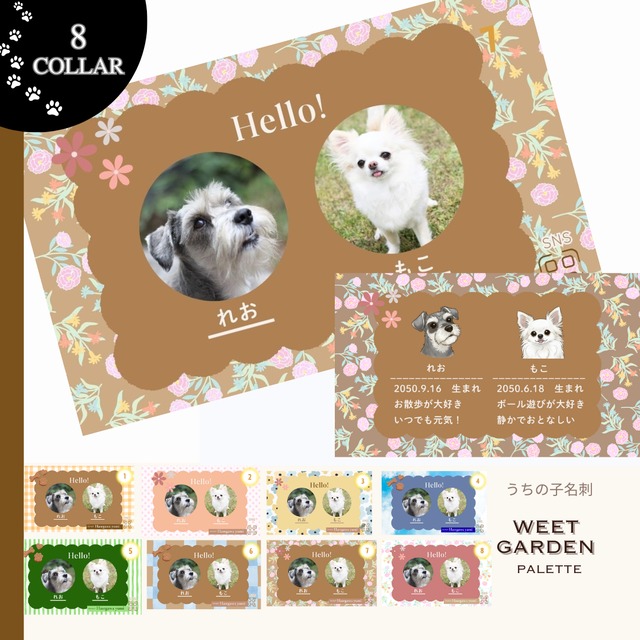 うちこの子 名刺 作成 100枚(うちの子2名様用)【Sweet Garden Palette】|写真×漫画イラスト両面仕様|犬・猫オーダー名刺(うちの子ギフト対応) ペット名刺