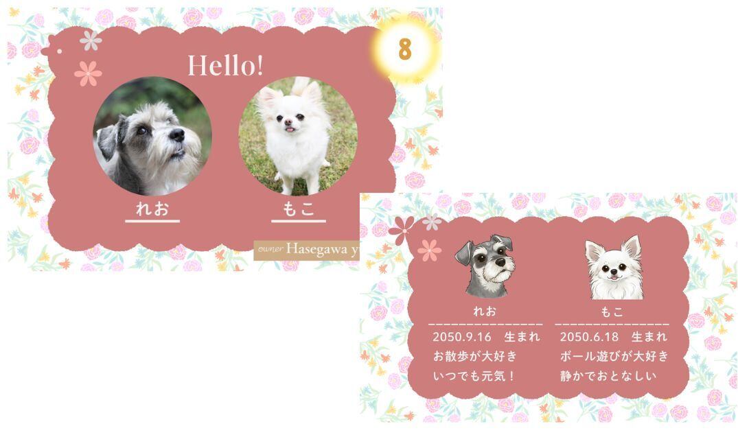 うちこの子 名刺 作成 100枚(うちの子2名様用)【Sweet Garden Palette】|写真×漫画イラスト両面仕様|犬・猫オーダー名刺(うちの子ギフト対応) ペット名刺