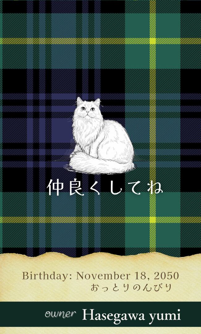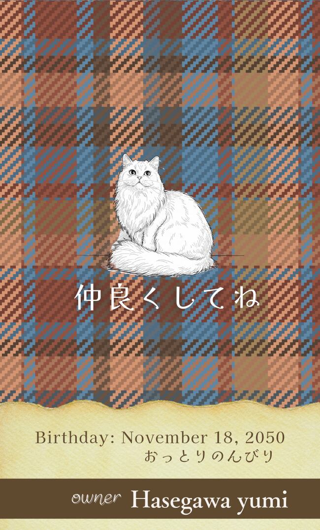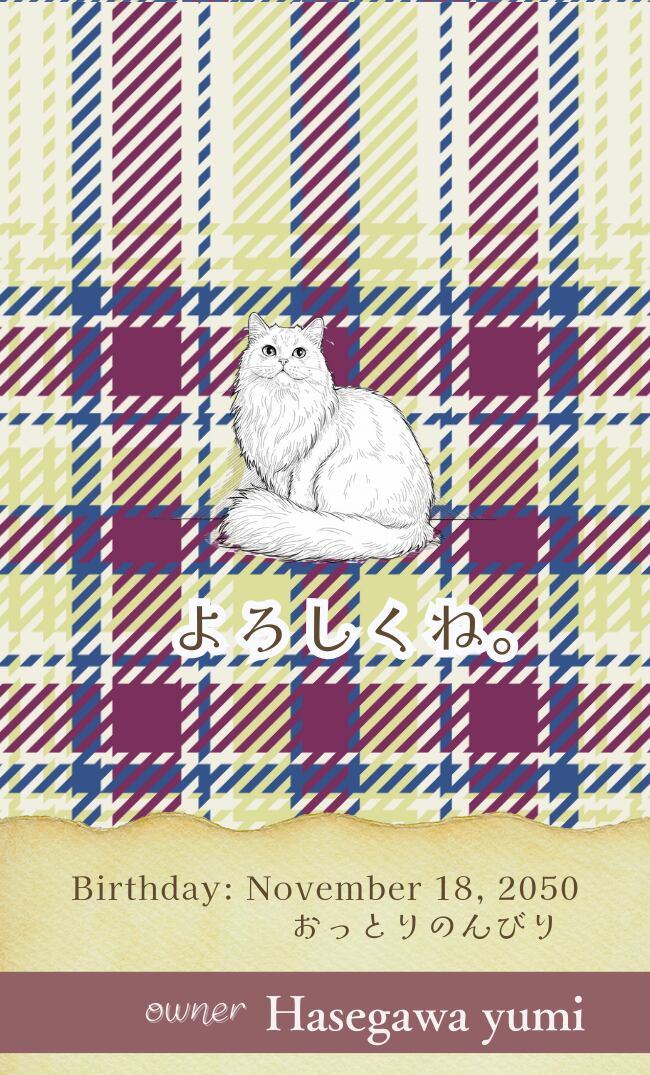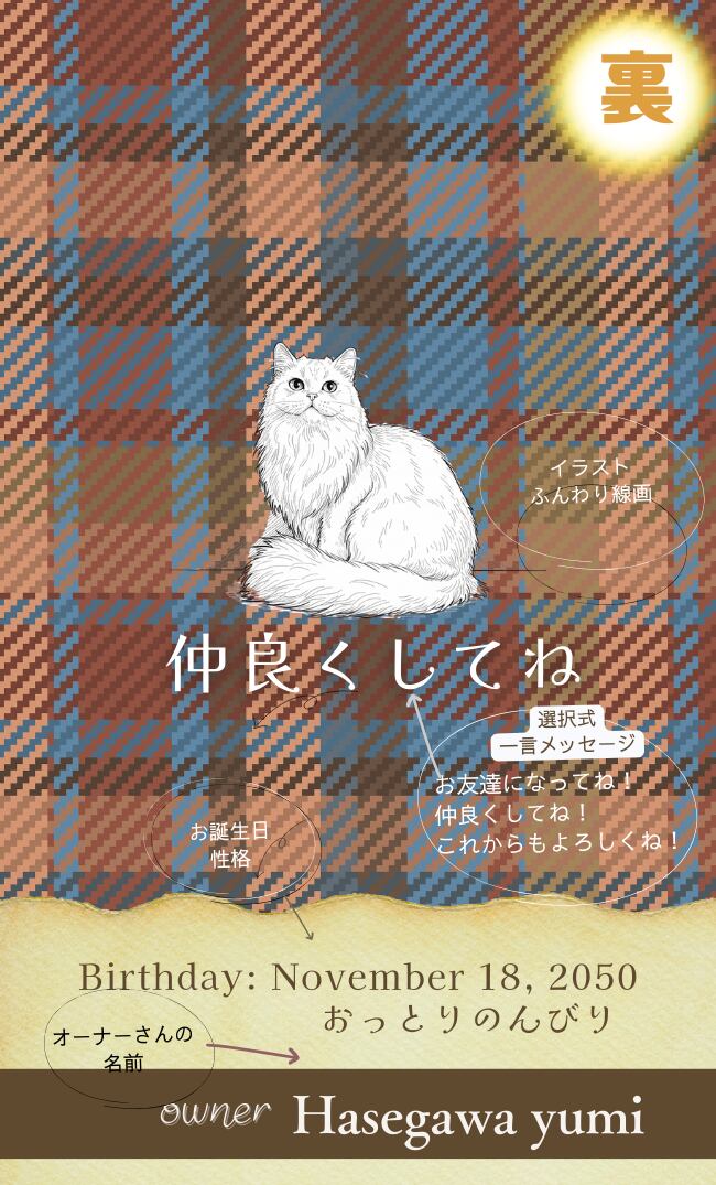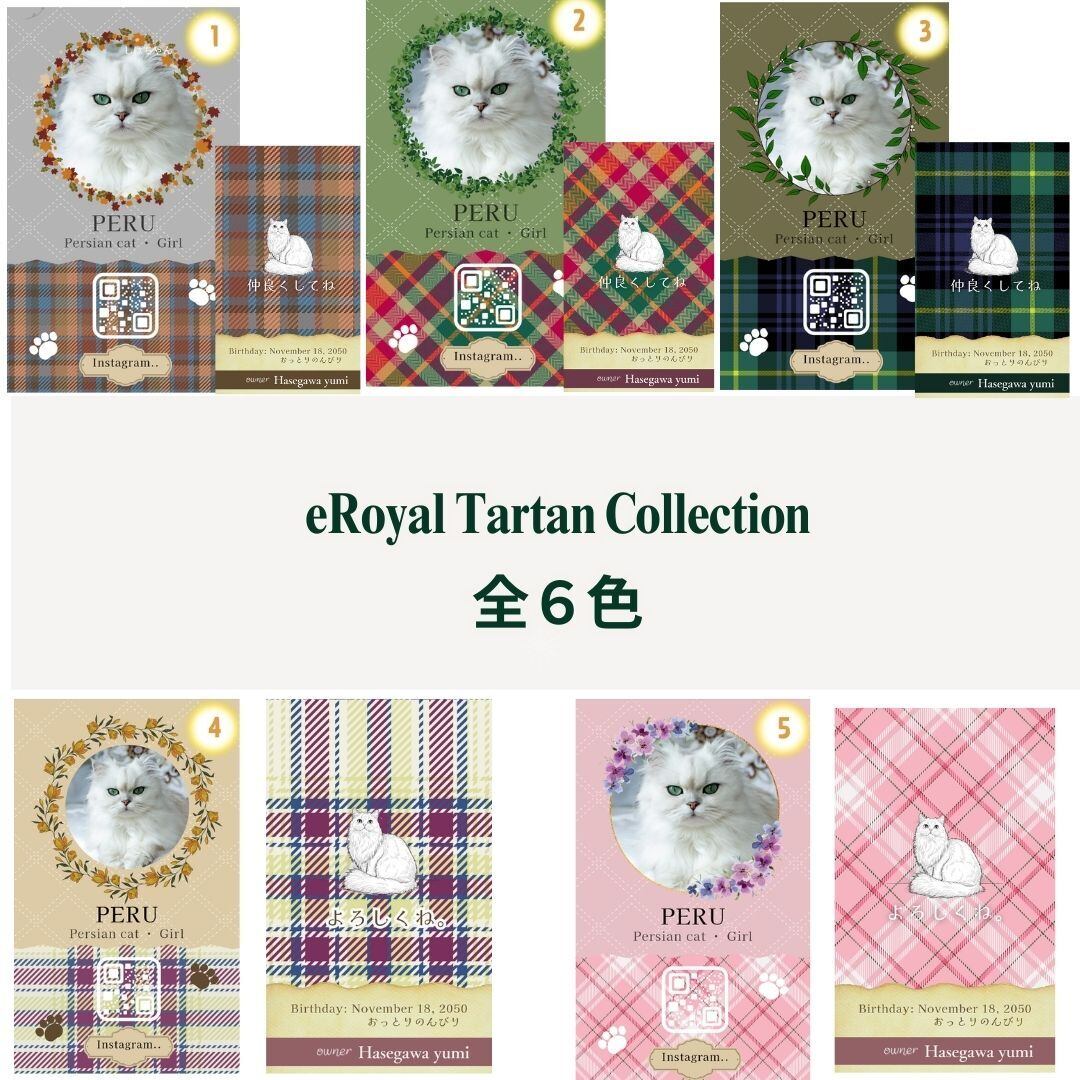 ペット名刺 作成 縦型【ロイヤルタータン コレクション】|写真×線画イラスト両面仕様|犬・猫オーダー名刺(うちの子ギフト対応) (コピー) (コピー)