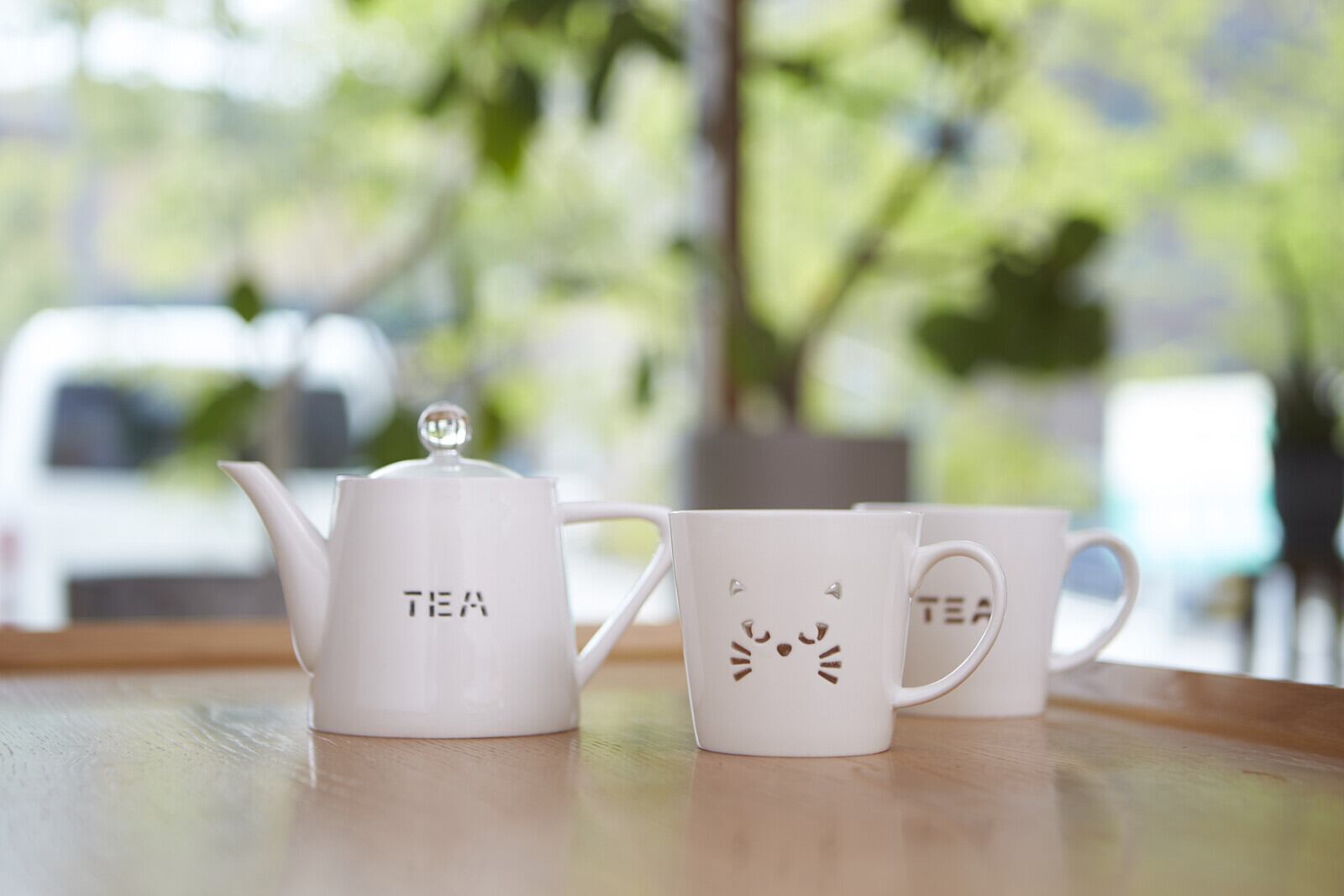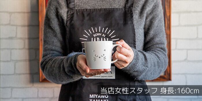 真っ白でシンプルな遊び心のある猫のイラストがポイントの【透かし】のマグカップ。