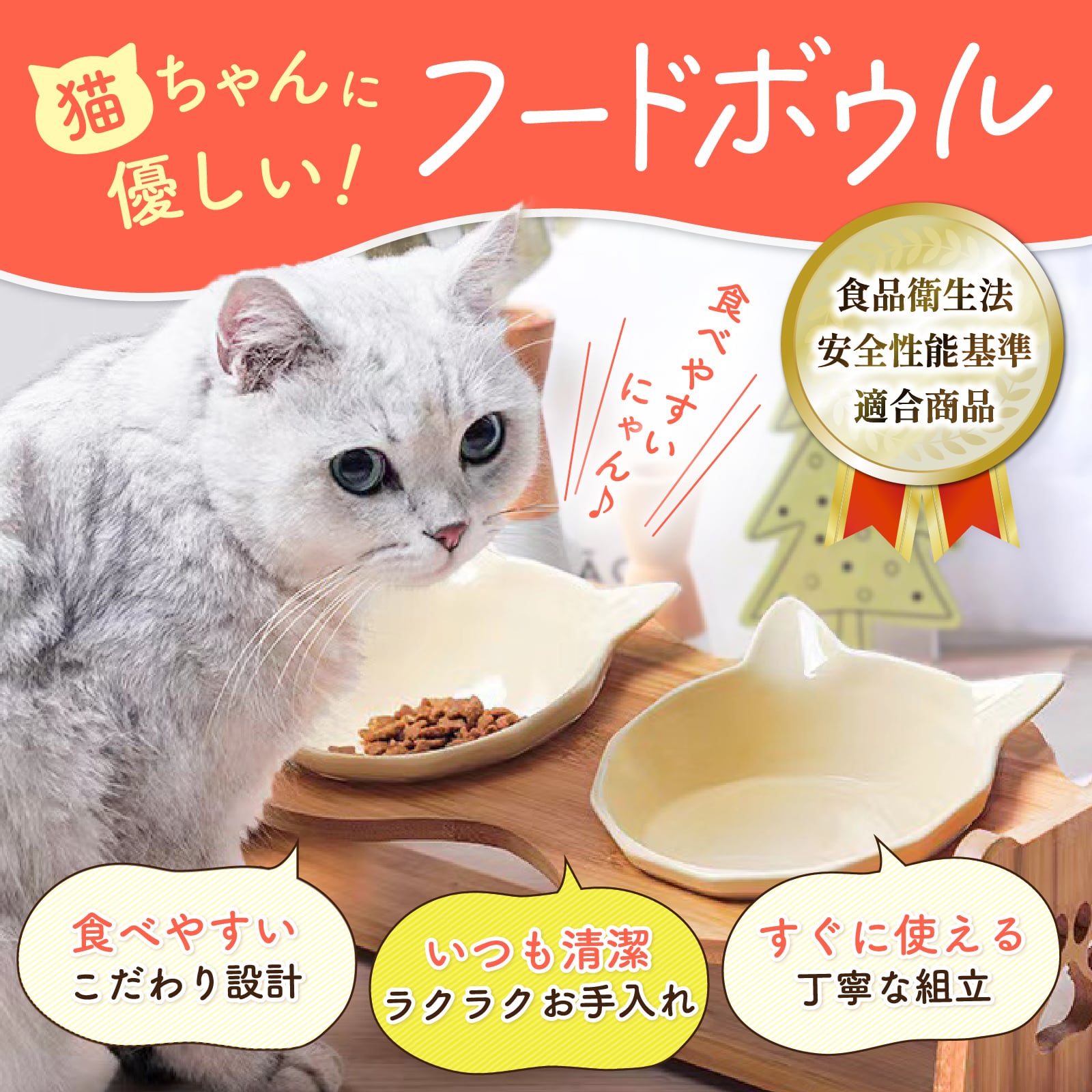 猫フェイスのお皿がとても可愛い、機能的なスタンド付きフードボウルセットです!